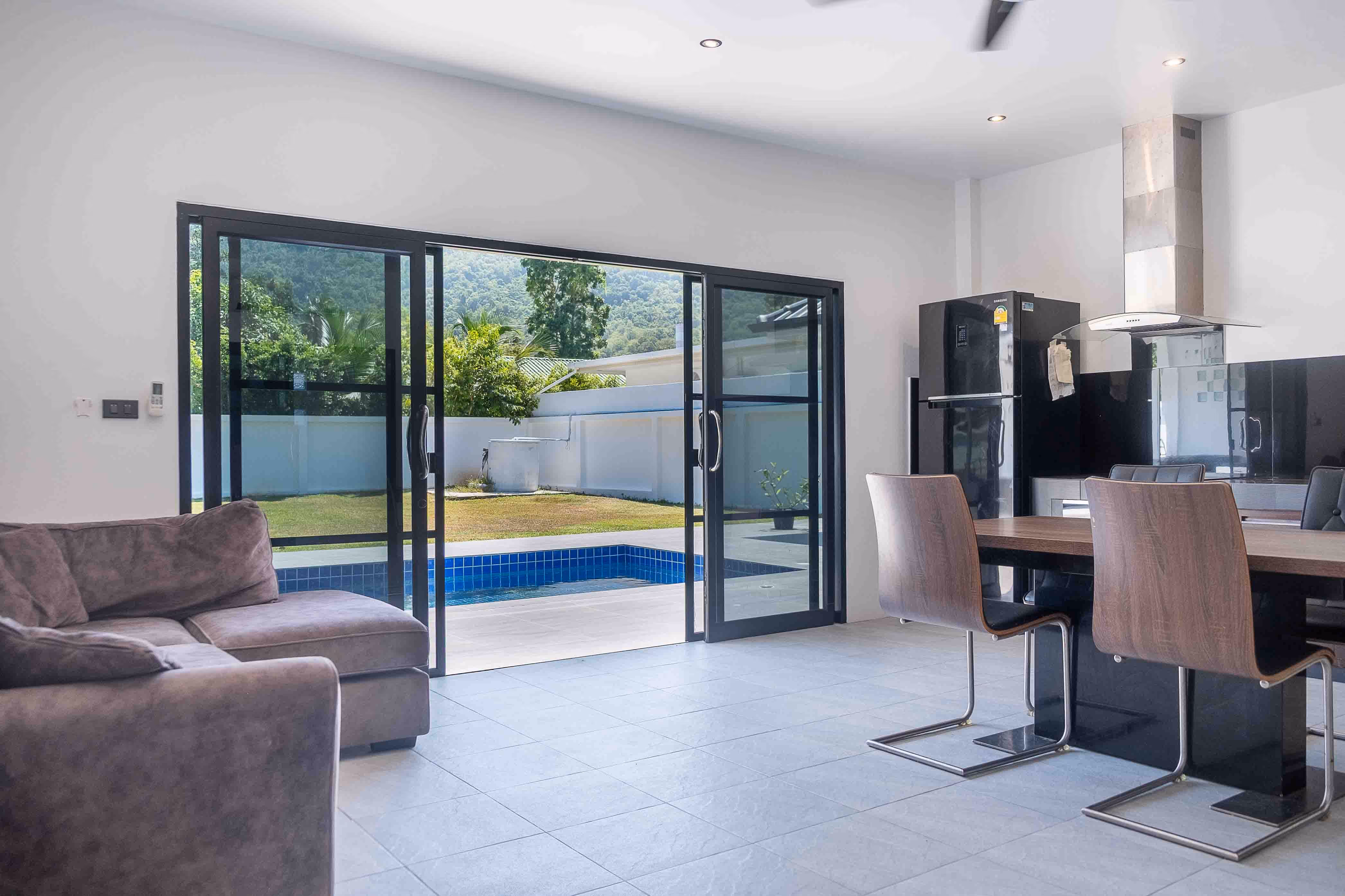 Située dans un environnement paisible et verdoyant à Namuang, la villa bénéficie d’une belle vue sur les montagnes, tout en étant à seulement 10 minutes de Lamai et de ses commodités.